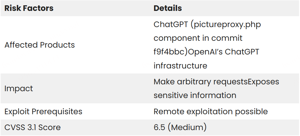 在这一案例中,攻击者主要通过操控ChatGPT的pictureproxy.php组件的url参数,发动攻击,攻击范围可以扩展到其他服务器或同一服务器内部的资源。通过此漏洞,攻击者能够获取原本应受到保护的数据或进行不法操作,造成安全威胁。