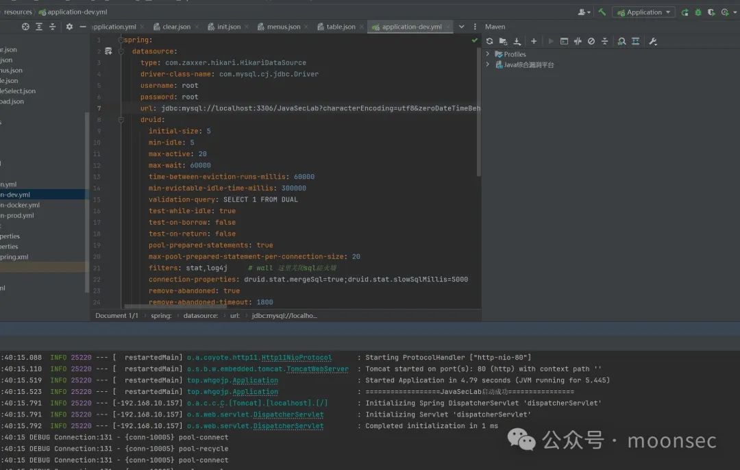 编辑 application-dev.yml 的数据库账号和密码还有端口