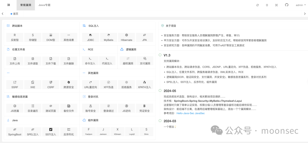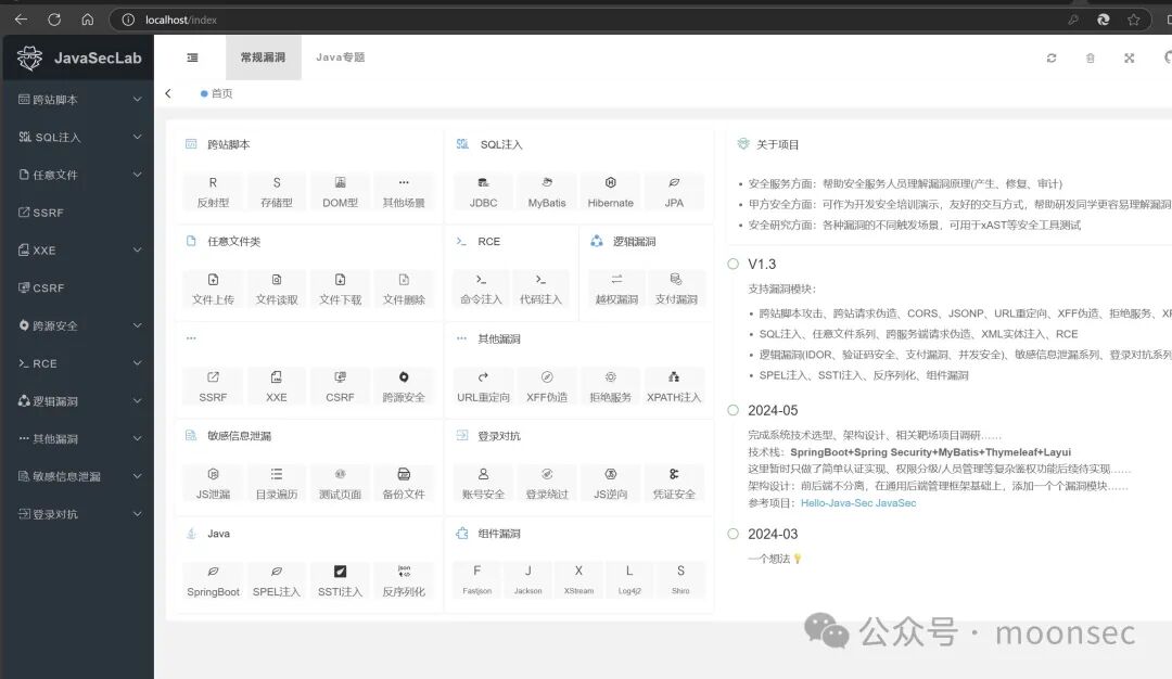 JavaSecLab是一款综合型Java漏洞平台,提供相关漏洞缺陷代码、修复代码、漏洞场景、审计SINK点、安全编码规范,覆盖多种漏洞场景,友好用户交互UI……