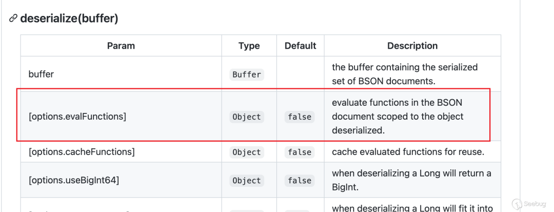 根据BSON文档的介绍,存在一种Code类型,可以在反序列化时被执行