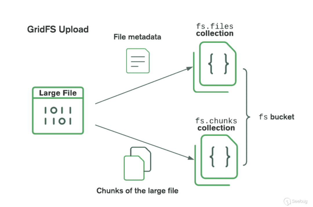 看图大致可以了解到GridFS在存储文件时,把元数据(metadata)放到fs.files