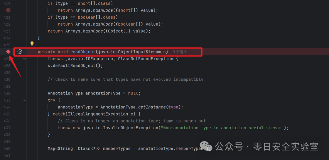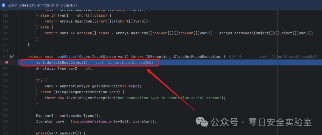 我们可以看到成功的停在了这里,并且执行了我们的readObject方法。