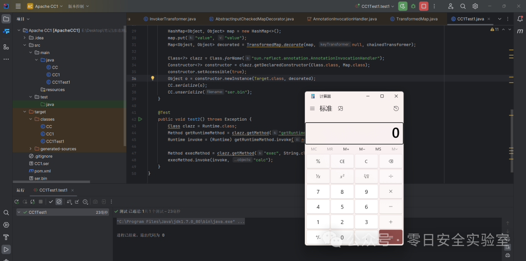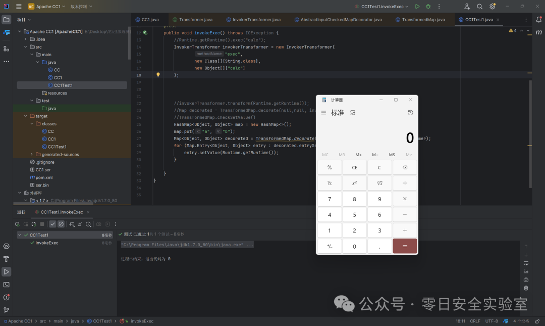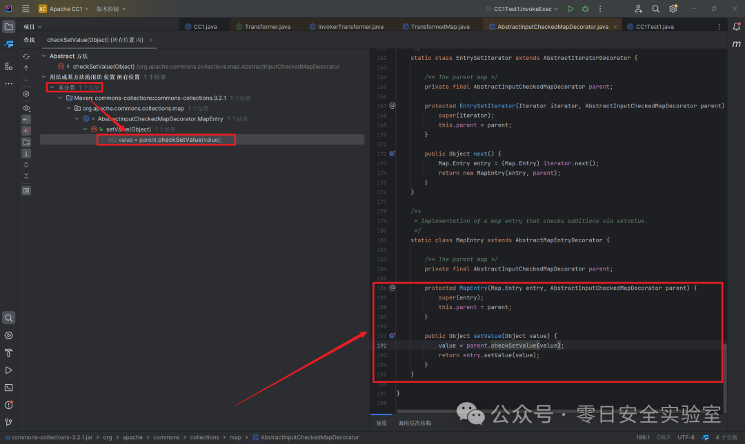 上一文章讲解了Apache CC漏洞的原理以及CC1调用链,这一文章我们继续接着讲解Apache CC漏洞CC1调用链的POC构造,也就是怎么构造CC1调用链的源码?