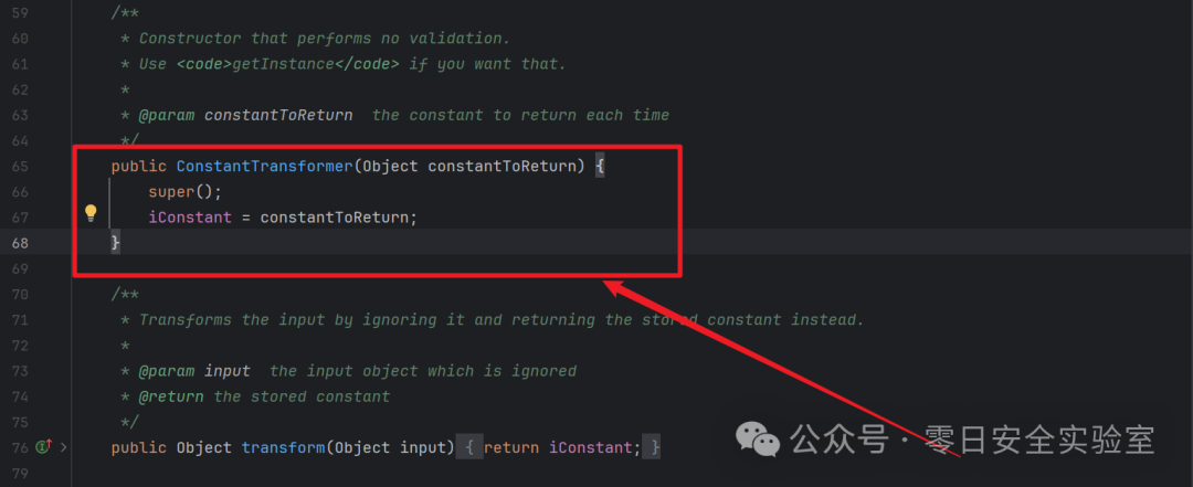 ConstantTransformer类的作用是不管你传入什么,它都能正常返回iConstant常量。