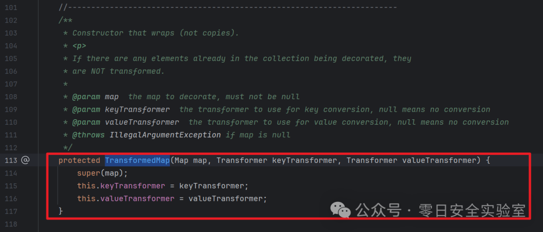 不难发现TransformedMap方法可以给我们的valueTransformer变量进行赋值,但是这个TransformedMap方法的访问级别是只有你在这个TransformerMap类的内部才可以去调用这个方法,在外部是无法调用的。