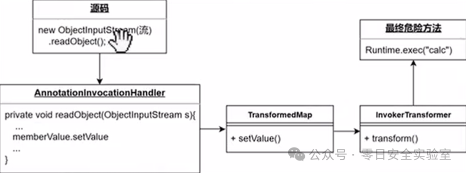 类,TransformedMap类,AnnotationInvocationHandler类,ConstantTransformer类和ChainedTransformer类。
