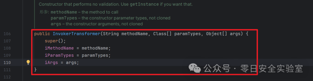 我们可以看到这个参数在InvokerTransformer类初始化构造的时候就被传了进来,并且对其进行了赋值,所以这里不管是执行哪个对象的方法都是可控的。那么我们就可以试着让它去执行一个危险方法。
