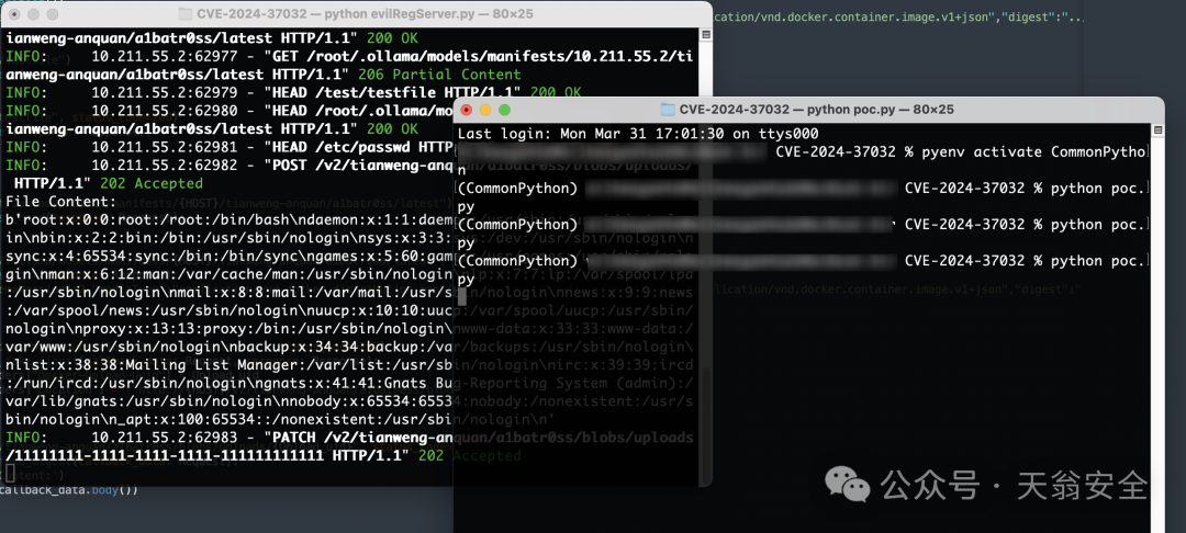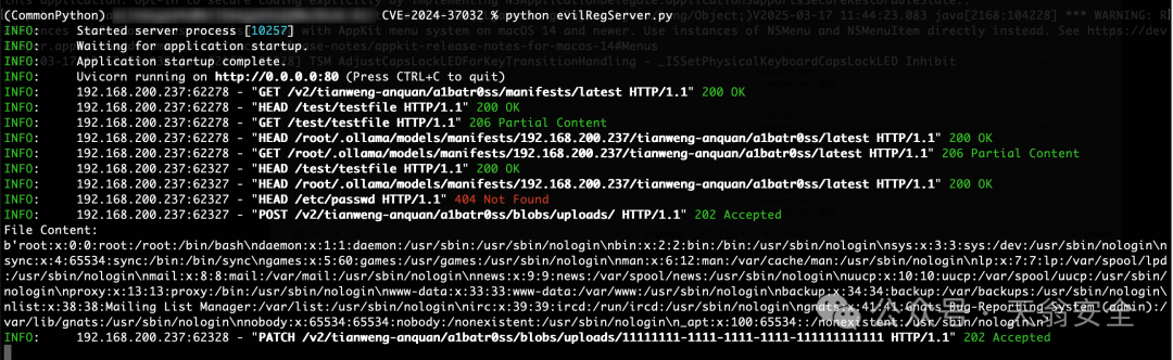 也可以直接执行漏洞利用脚本POC-CVE-2024-37032.py
