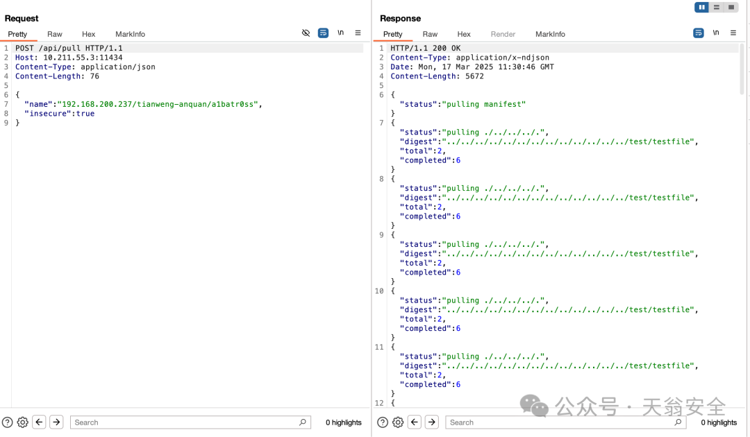 接口默认可以从Ollama官方registry拉取镜像,当然我们也可以选择从自己构建的私人服务器上拉取镜像。