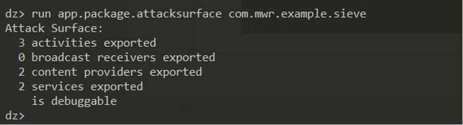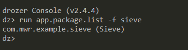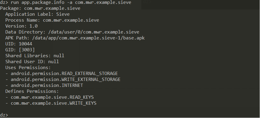 run app.package.info –acom.mwr.example.sieve