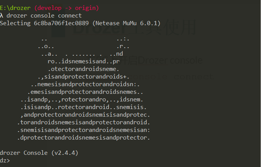 上开启Drozer console