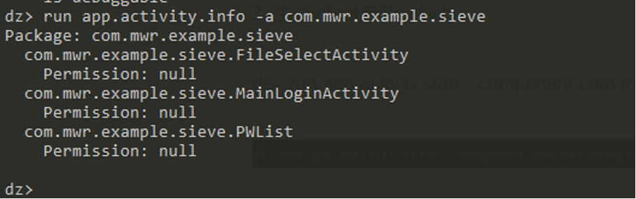 run app.activity.info -a com.mwr.example.sieve