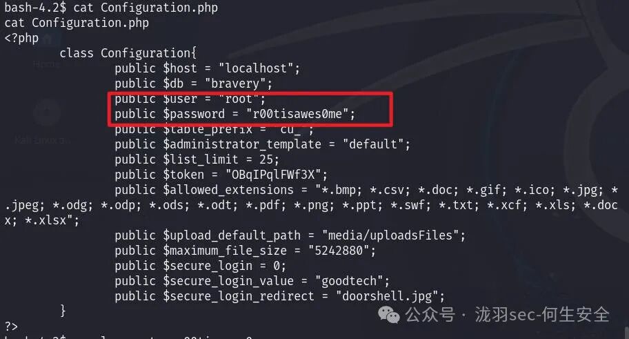 查看网站中的配置文件,发现连接数据库的用户名和密码,并且以root