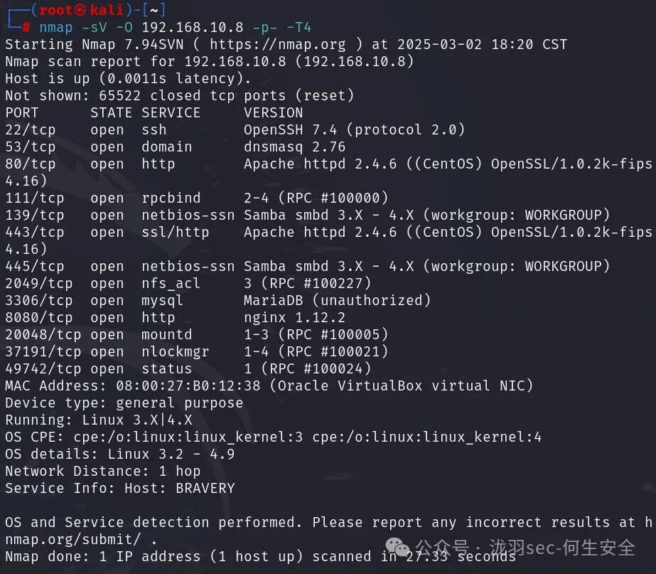 nmap -sV -O 192.168.10.8 -p- -T4