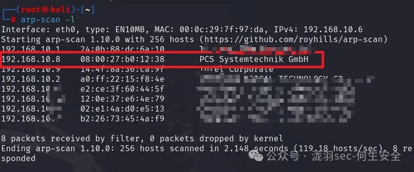 或netdiscover -r 192.168.10.1/24