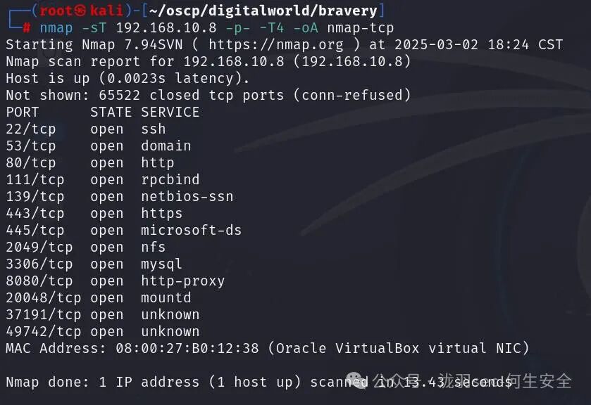 nmap -sT 192.168.10.8 -p- -T4 -oA nmap_tcp