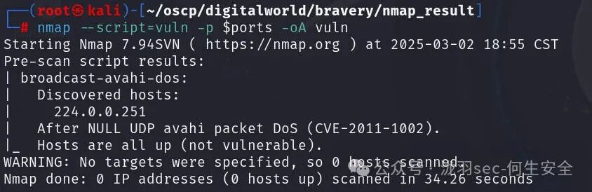 nmap --script=vuln -p $ports -oA vuln