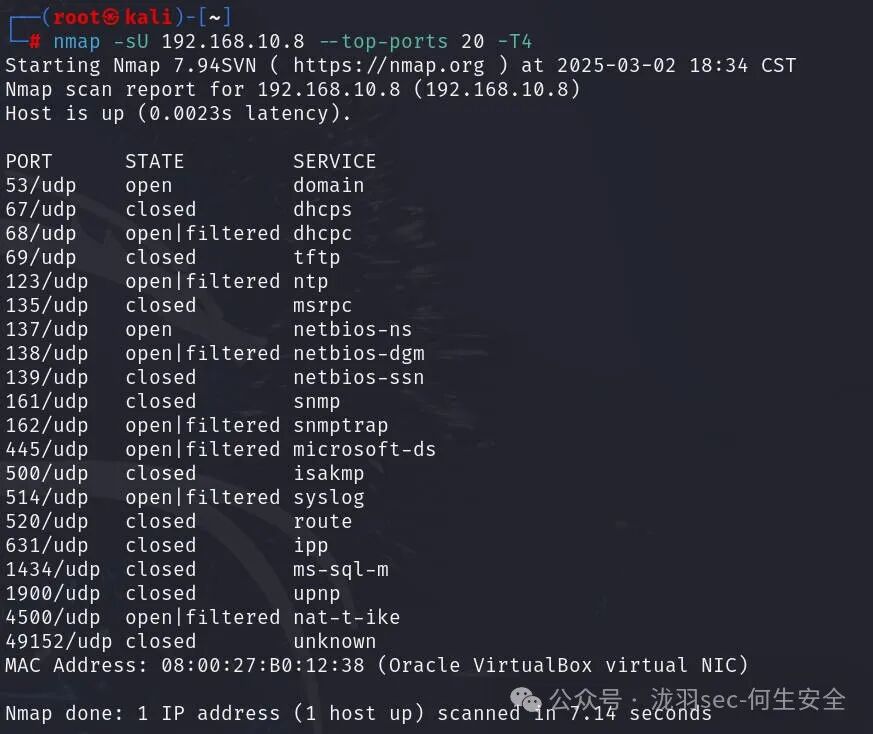 nmap -sU 192.168.10.8 --top-ports 20 -T4