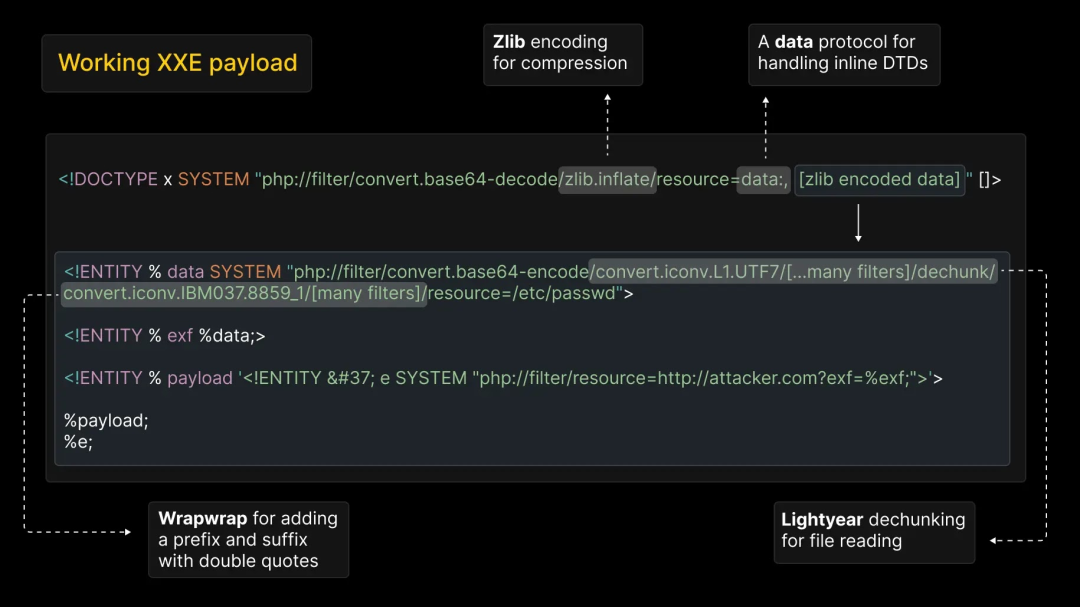 PT Swarm 的分析师发现,攻击链涉及一系列复杂的绕过,这些绕过共同造成了他们所描述的“几乎不可能的 XXE 漏洞”。