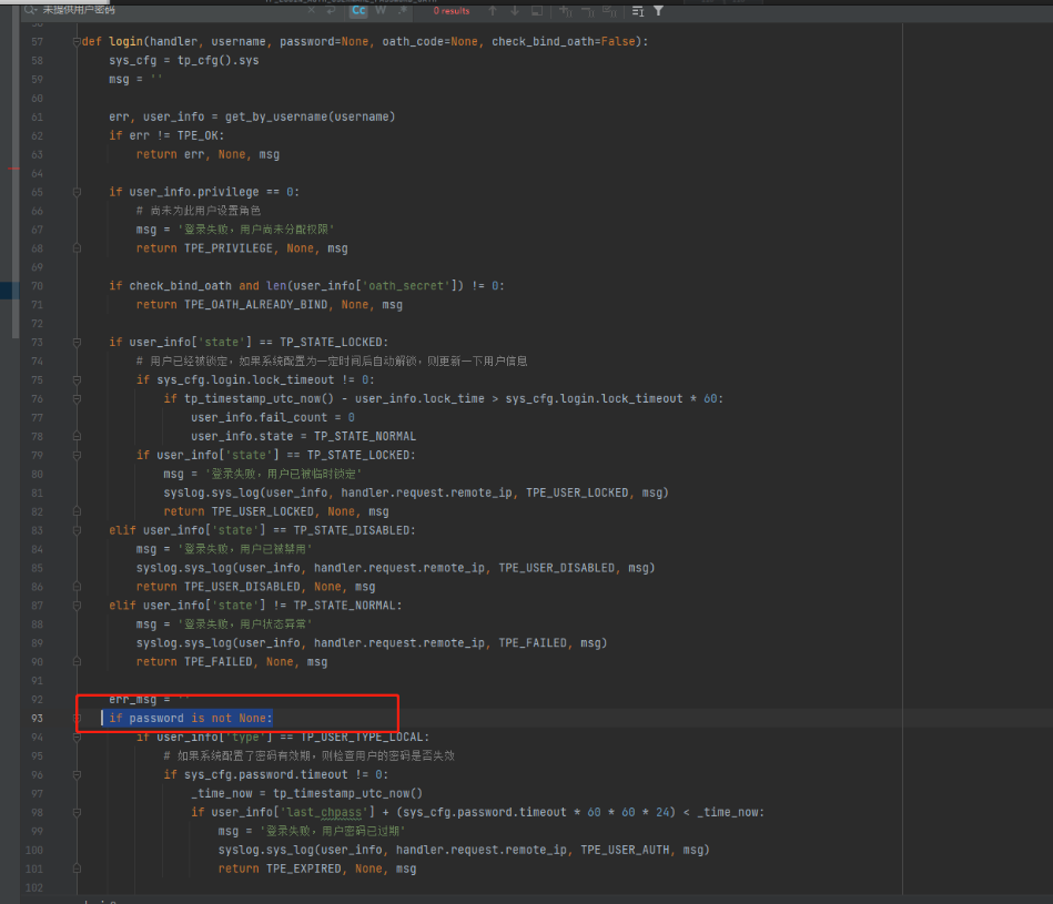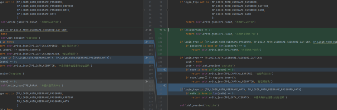 两个地方。一个是elif 改成了if 然后是检测了密码是否存在。那么跟进去代码看看login 的逻辑