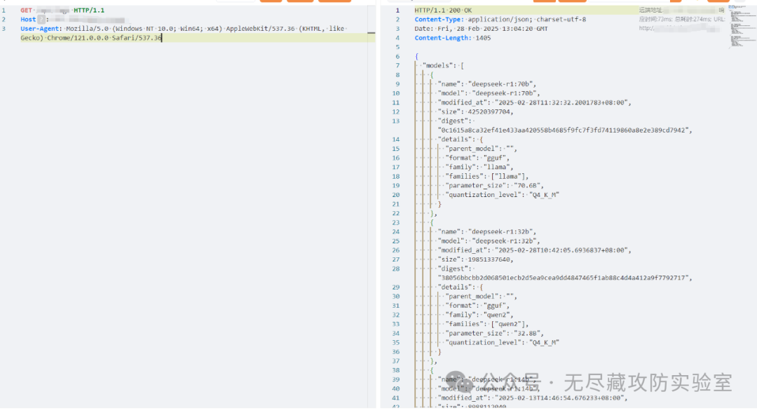 在这种修改之后,如果未额外配置身份认证或访问控制机制,Ollama 的管理接口就会暴露于公网,导致攻击者只需访问服务端口(默认 11434)即可调用敏感功能接口,进而读取、下载或删除私有模型文件,或滥用模型推理资源等。