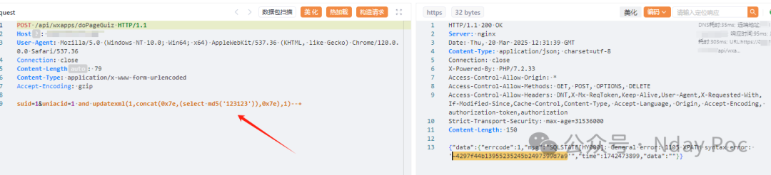 doPageGuiz 存在SQL注入漏洞,未经身份验证的远程攻击者除了可以利用 此漏洞获取数据库中的信息(例如,管理员后台密码、站点的用户个人信息)之外,甚至在高权限的情况可向服务器中写入木马,进一步获取服务器系统权限。