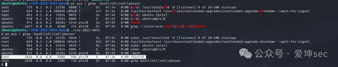 ps aux | grep 'bash\|sh\|zsh\|pkexec'