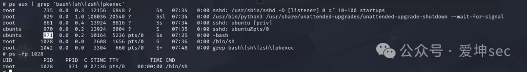 我们发现其父id是ubuntu用户的,我们通过auth日志发现,我们的ubuntu用户是通过ssh登录的