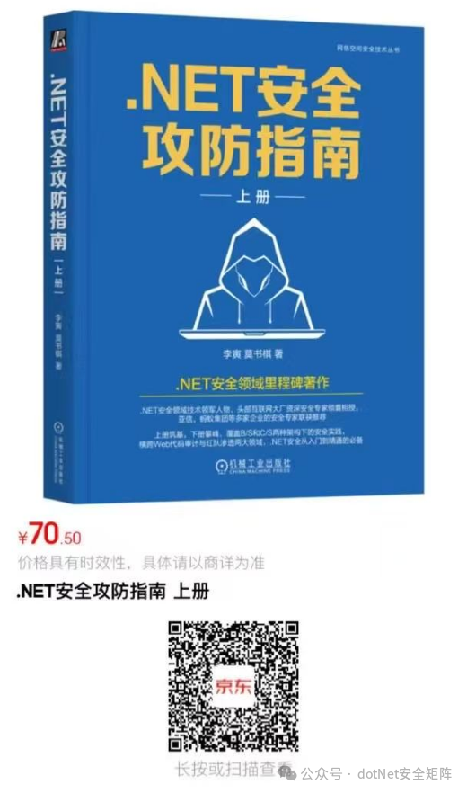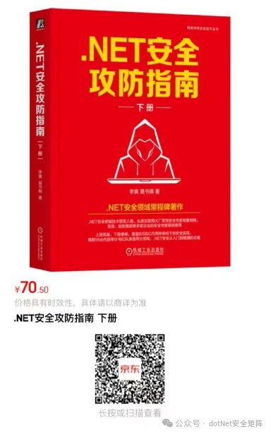 本文内容节选自《.NET安全攻防指南》一书 第17章 .NET反序列化漏洞插件,感兴趣的读者可进一步阅读本书获取更多安全研究内容。