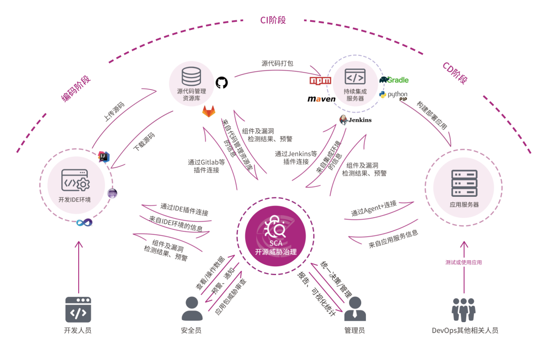 移动端数字供应链安全开源治理体系。通过引入自研专利级源码组件成分分析、制品成分二进制分析、容器镜像成分扫描、运行时成分动态追踪、代码成分溯源分析及开源供应链安全情报预警分析等六大核心引擎的SCA产品,不间断针对被引入的移动端开源软件展开多维度监测、深度分析以及精准预警,快速捕捉漏洞信息,并及时反馈详尽的分析结果,助力企业及时洞悉数字应用内开源组件资产详情与漏洞情报动态。