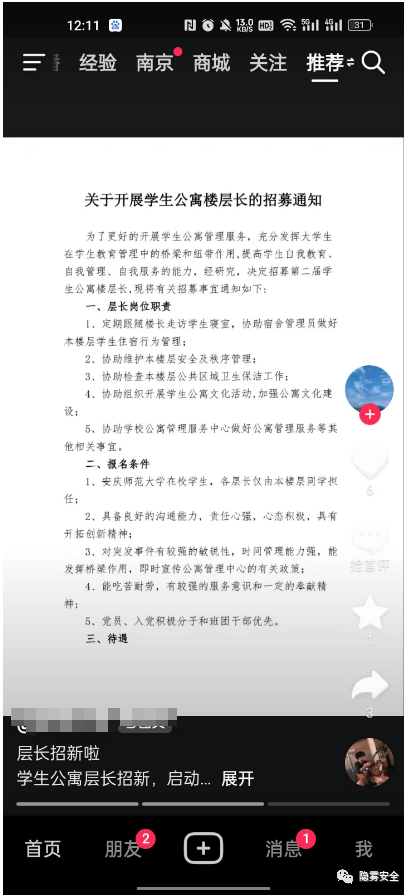 刷着抖音,突然发现奇怪的抖音号,学生公寓招层长怎么被我刷着了,这号是不是废了,我刷到的都是美女啊,突然发现学生公寓楼层长,进入主页看看吧