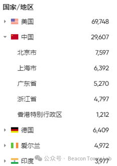 据daydaymap数据显示互联网存在145,762个资产,国内风险资产分布情况如下。