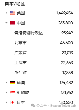 据daydaymap数据显示互联网存在2,864,117个资产,国内风险资产分布情况如下: