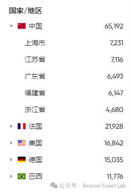 据daydaymap数据显示互联网存在226,385个资产,国内风险资产分布情况如下,主要分布在国内沿海省份。
