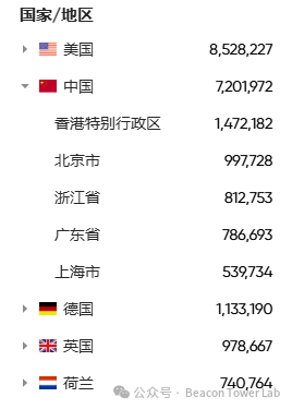 据daydaymap数据显示互联网存在29,294,851个资产,国内风险资产分布情况如下:
