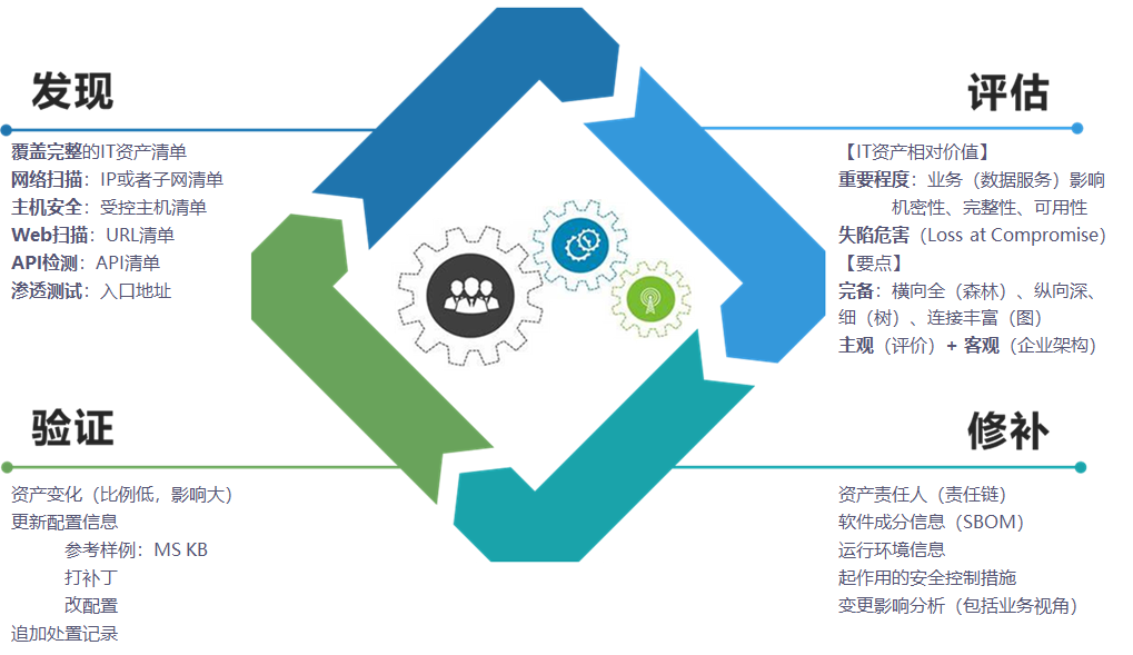 漏洞“发现-评估-修补-验证”各环节对资产管理的需求如下图所示。