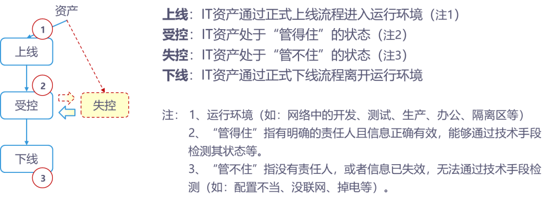 在运行环境中,只有受控的资产得到有效管理(图中②)。包括有效降低资产失控比例的控制措施。