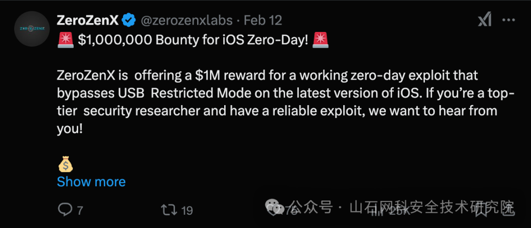 若攻击者能够从锁屏界面直接绕过USB限制模式,则意味着设备将重新暴露于上述风险中。近期社交媒体上的案例(如此推文[3])也印证了攻击者对此类绕过能力的迫切需求: