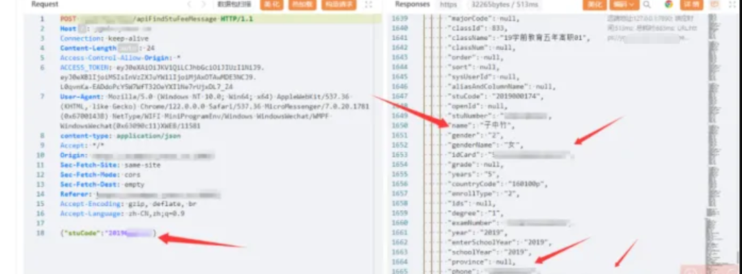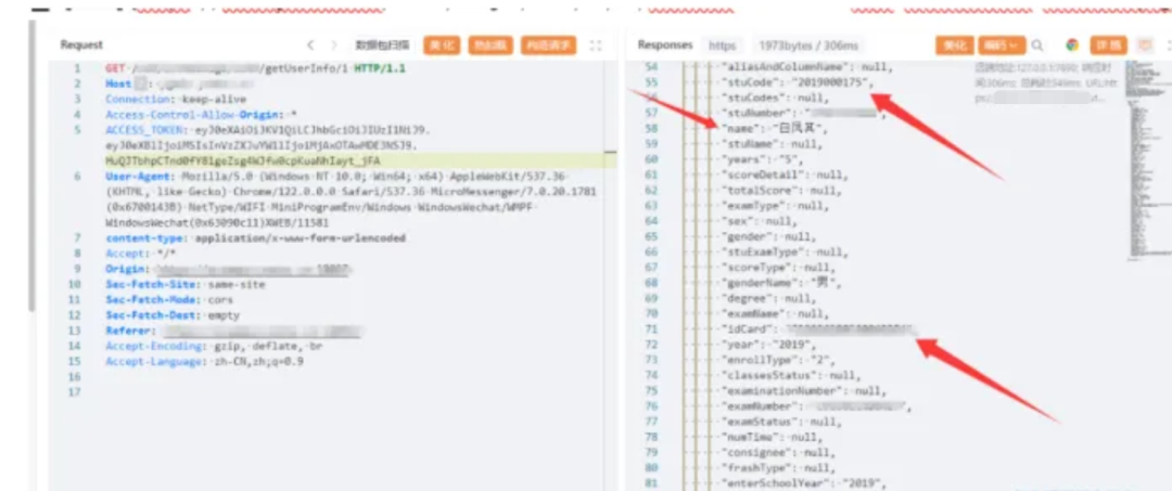 xxx学校———存在弱口令、jwt伪造、越权、未授权访问、敏感信息泄露漏洞 前期web端打点,发现web端服务太少,只有一个nacos系统,存在身份权限绕过漏洞,登录进去之后发现了一个jwt密钥和一些内网ip和数据库账密,于是便想着jwt密钥后利用,但是web打点并没有发现对应的系统,无法,转战微信小程序端,看看能否有产出。检索后发现该校有一个小程序,于是开始!