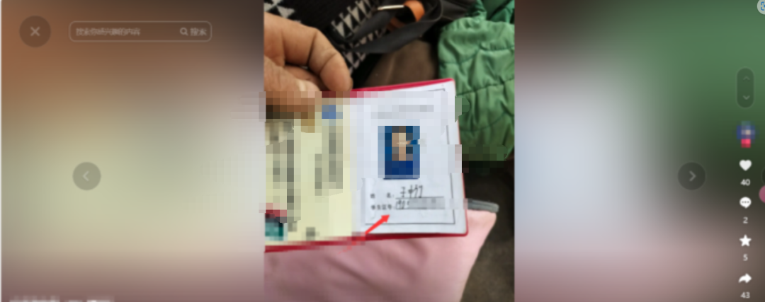 写的很清楚:学号加sfz即可登录 于是某短视频平台检索该校的学生证信息,运气很好,成功发现: