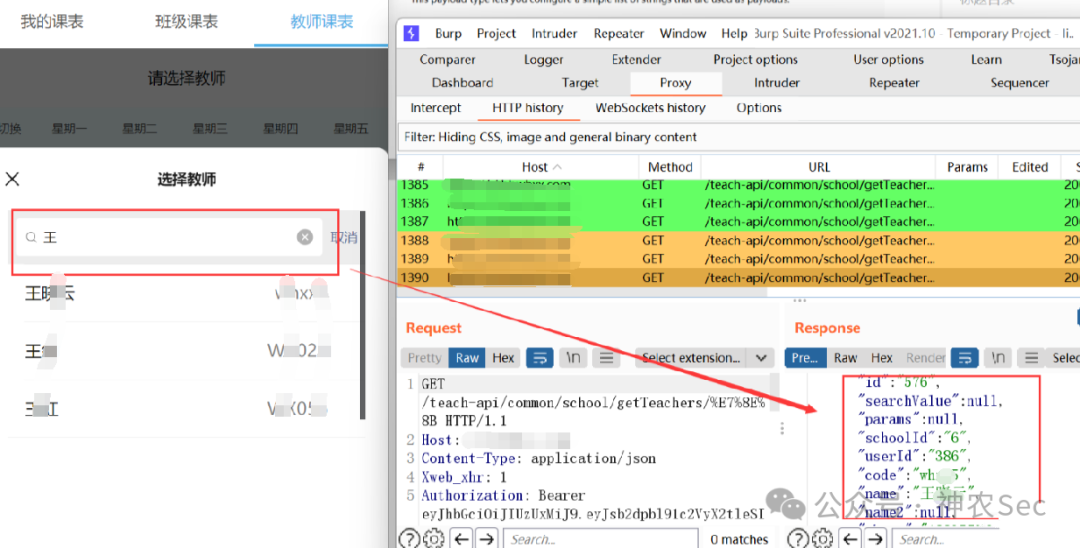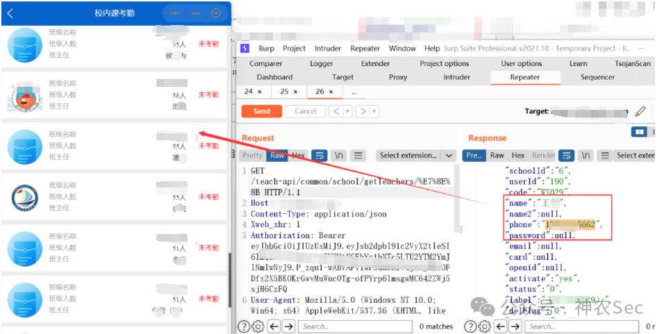 尝试发现这个性王的老师,应该是学校管理员账号,可以看到全年级的考勤信息
