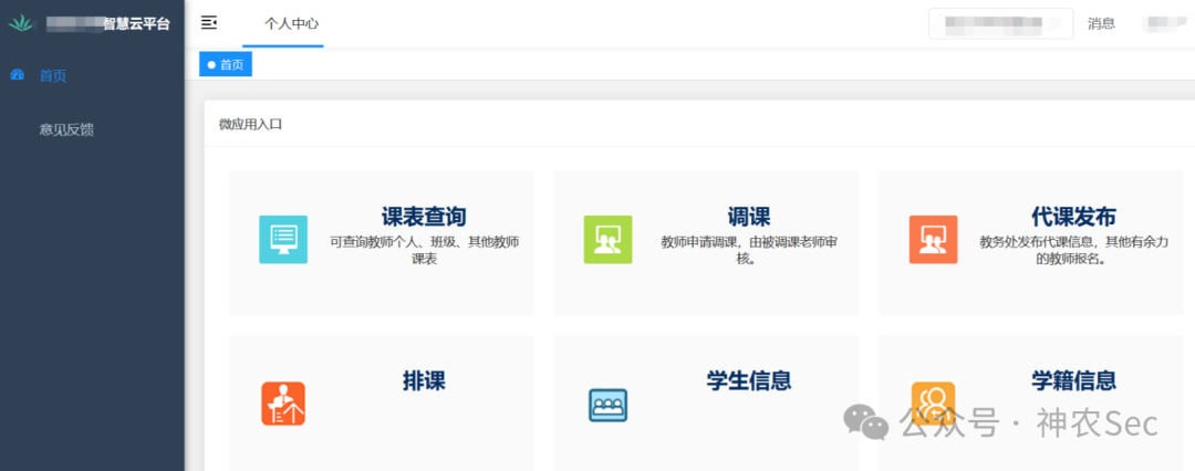 我是有目的性的针对这个大学的小程序进行渗透测试的,所以直接在微信小程序检索该大学,然后挨个进行测试,发现该学校有智慧云平台(这个我还是蛮感兴趣的,因为之前我挖到蛮多的这类平台的漏洞)瞬间就比较兴奋。