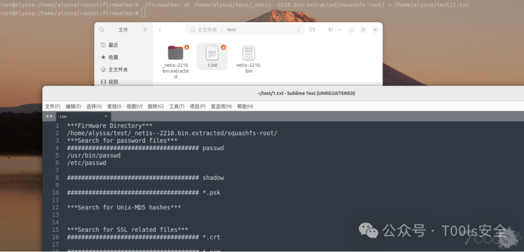 - Firmwalker 路径(/home/……/squashfs-root),定位处理文件。