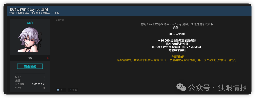 2.恶意行为者求购影响 1 万台设备的 0day rce