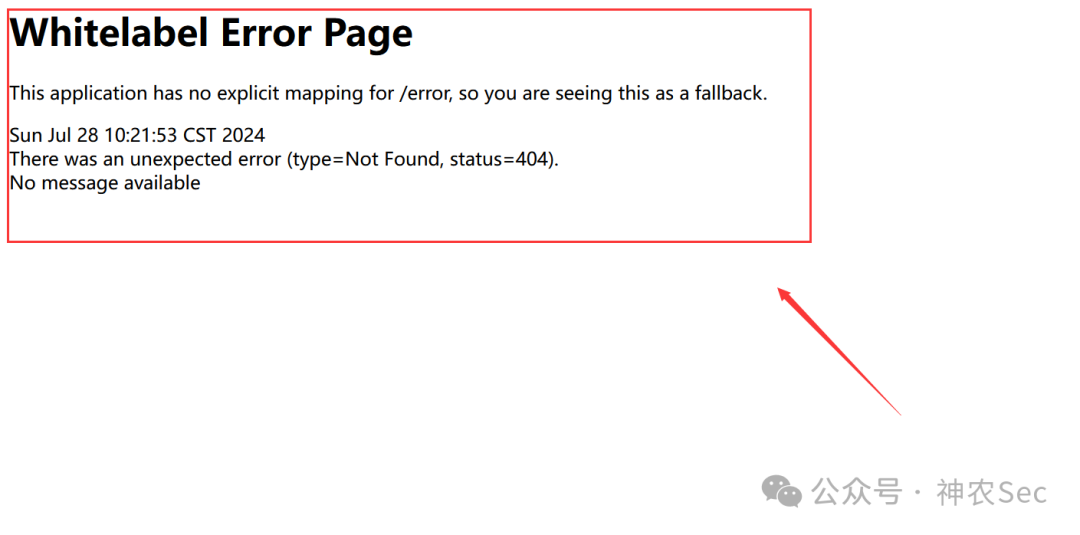 Swagger 也是spring二次开发的产品,所以一般找Swagger 接口信息泄露的漏洞可以去找spring-boot经典报错的页面,下面就是经典的spring-boot报错页面: