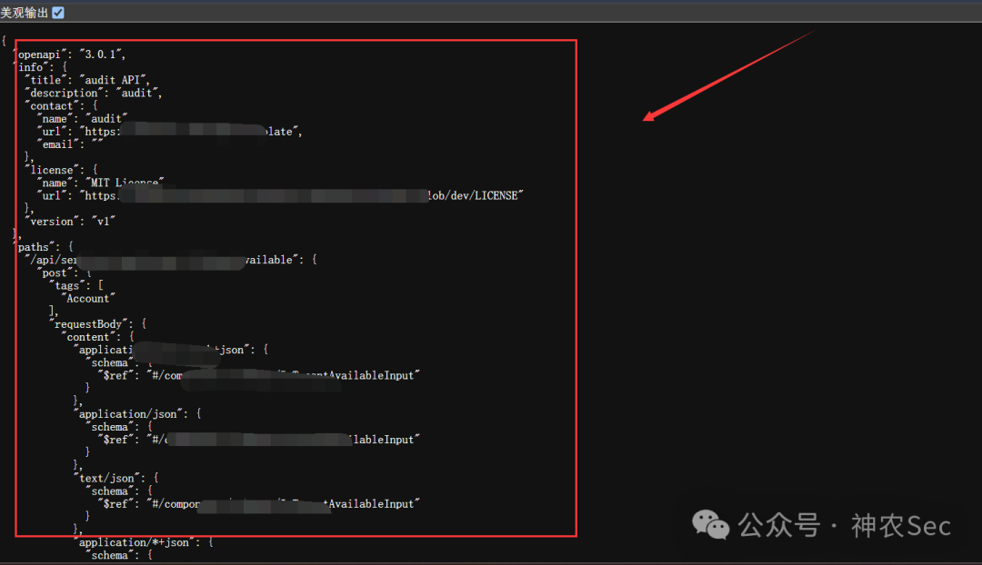 然后可以在json文件看到里面有非常多的api接口泄露,但是太多了很多都是没有权限访问的,要是挨个拼接不太现实,那么下面我就给师傅们介绍下面下面的这款swagger工具