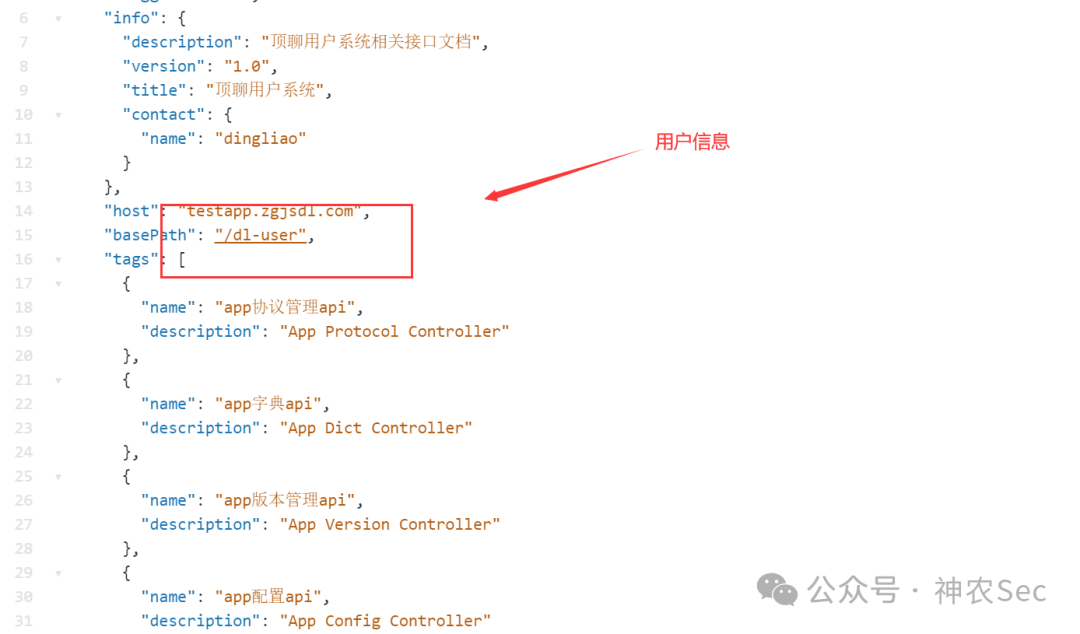 首先我们先访问下这个泄露的swagger/v1/swagger.json文件目录