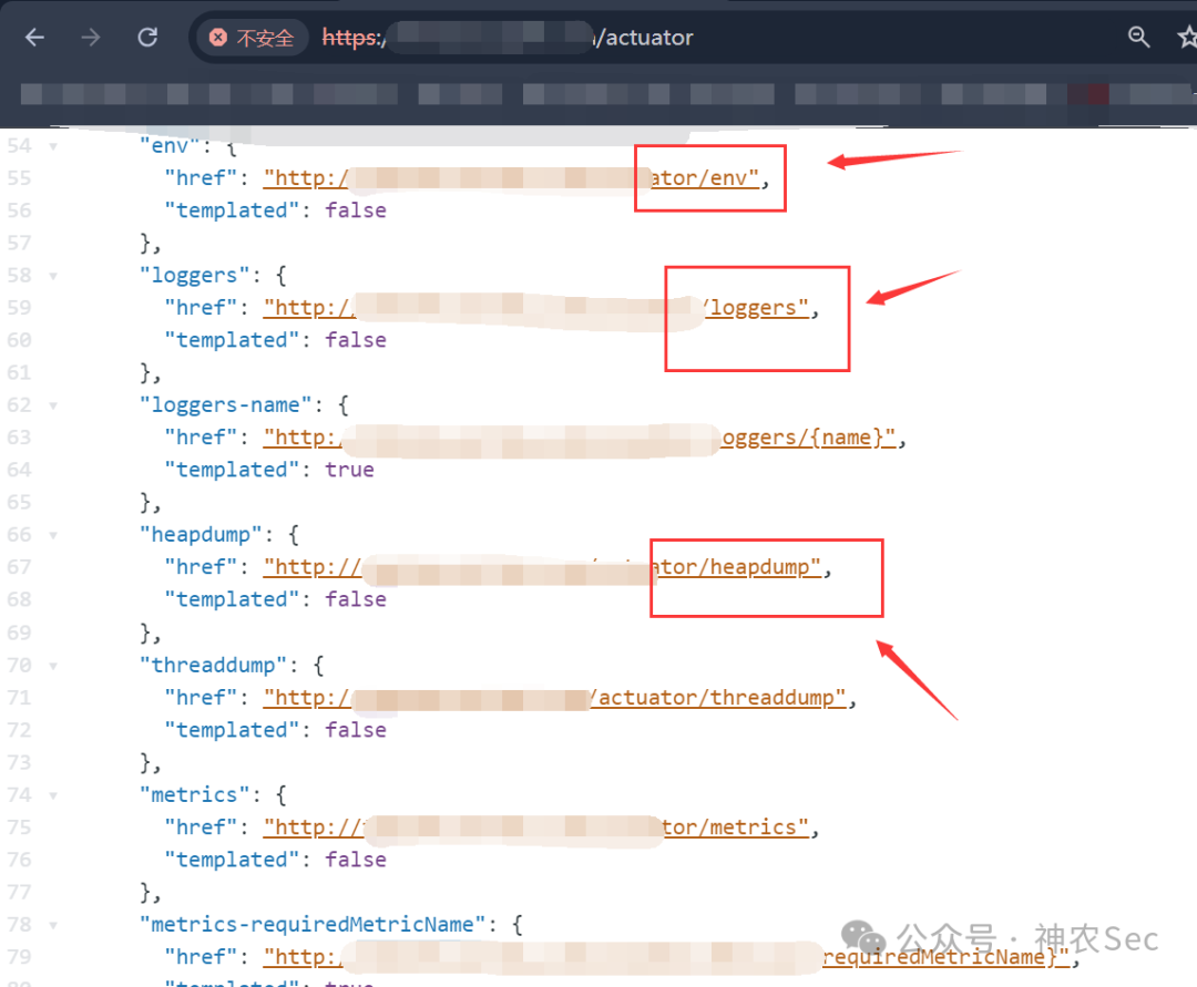 /actuator目录接口下面有非常多的接口信息泄露,什么env、log日志信息、heapdump信息